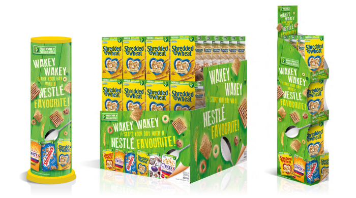 We worked closely with Nestle Cereal Partners and created the current ‘wakey wakey’ campaign. We further produced a range of cost-effective POS and merchandising solutions including pallet wraps, wobblers, advertising, FSDU’s and shippers for overarching in-store promotions. They needed activation. They work with Brand Britain. |